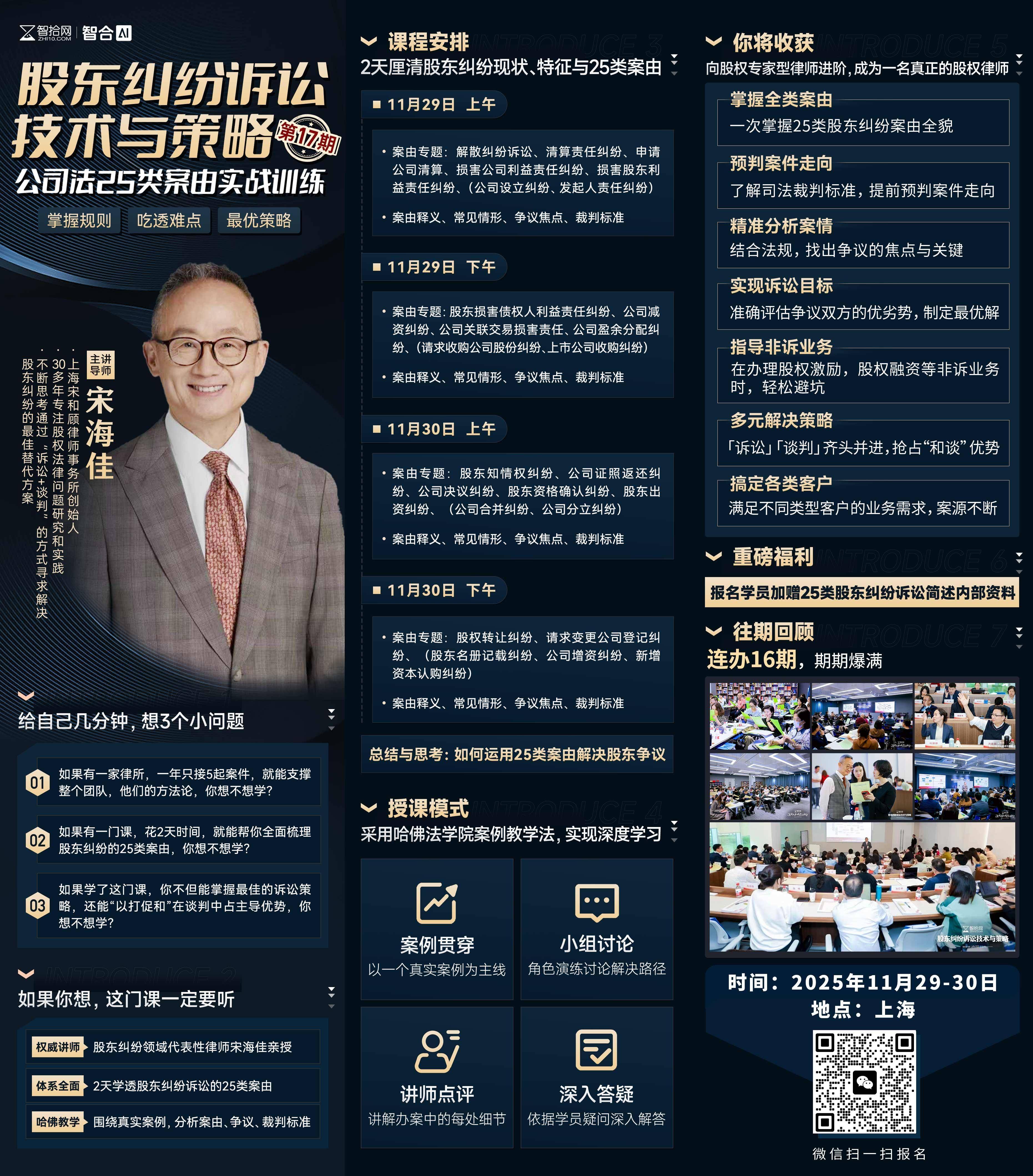 【团购专享】1129-上海-股东纠纷十七期报名链接-Xana 扫二维码继续学习 二维码时效为半小时