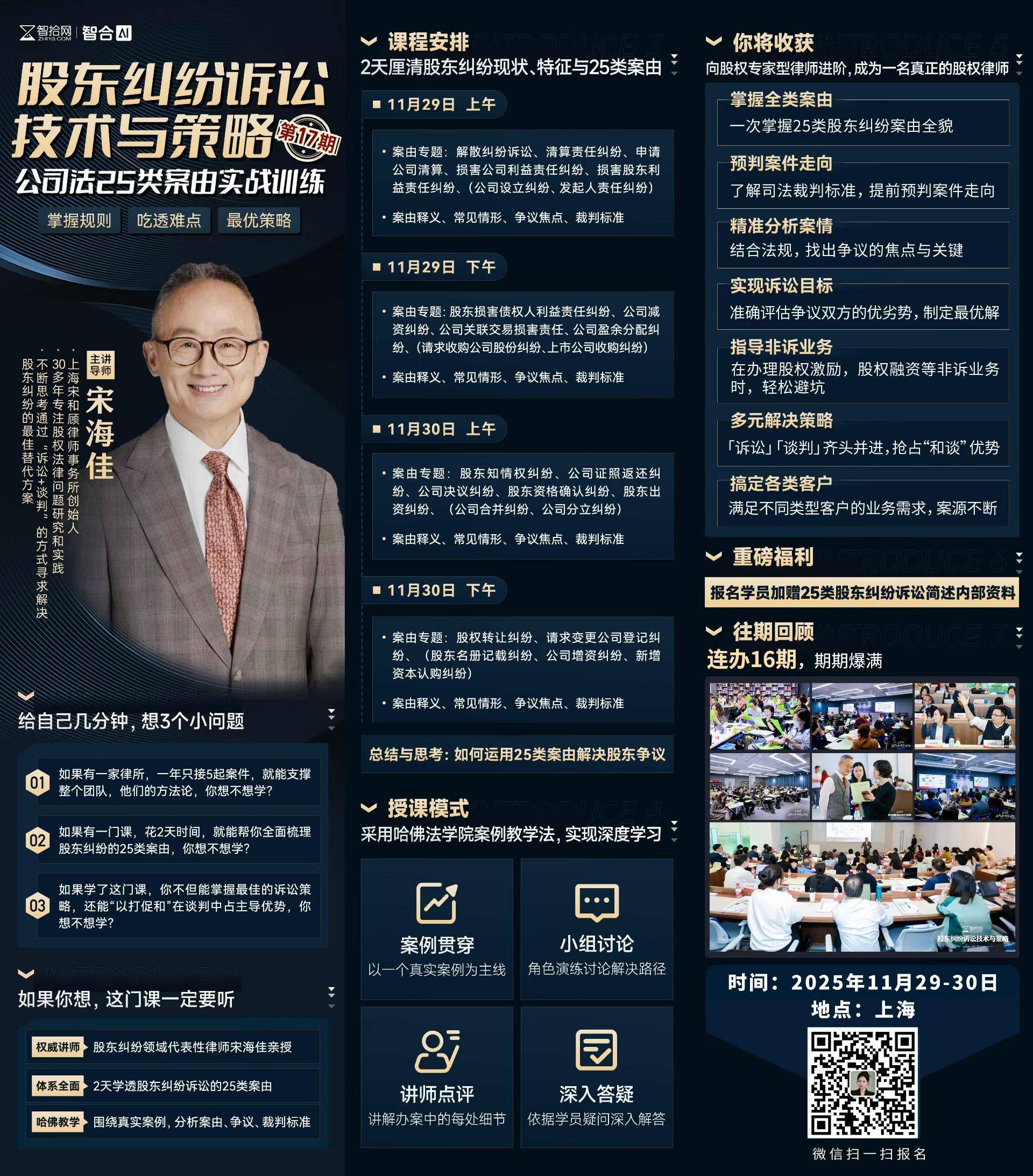 【会员专享】1129-上海-股东纠纷十七期报名链接-智拾网Lucy 扫二维码继续学习 二维码时效为半小时