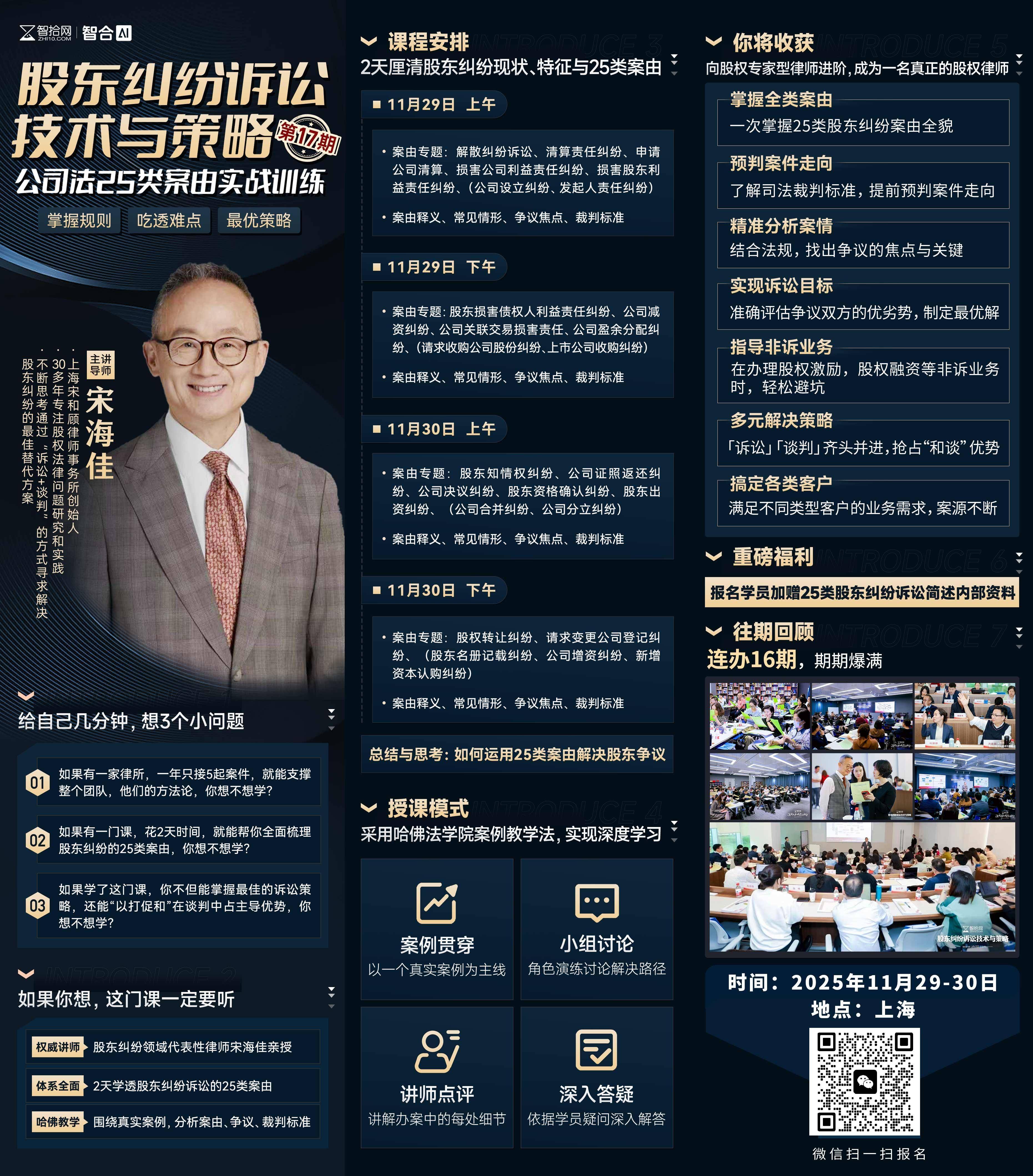 【会员专享】1129-上海-股东纠纷十七期报名链接-智拾网Harlan 扫二维码继续学习 二维码时效为半小时