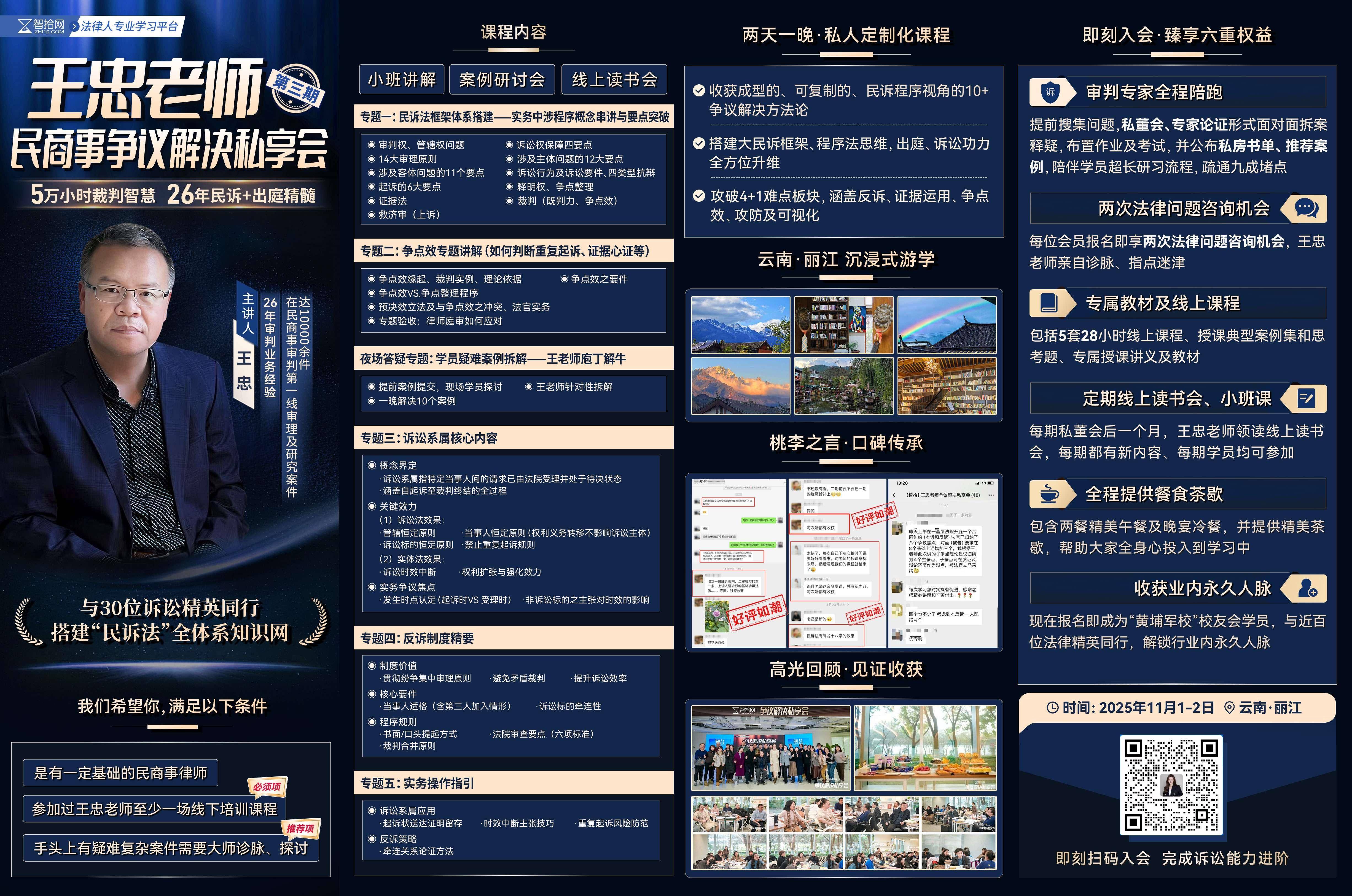 【年卡专项】王忠争议解决私董会第三期报名链接-智拾网Ratty 扫二维码继续学习 二维码时效为半小时