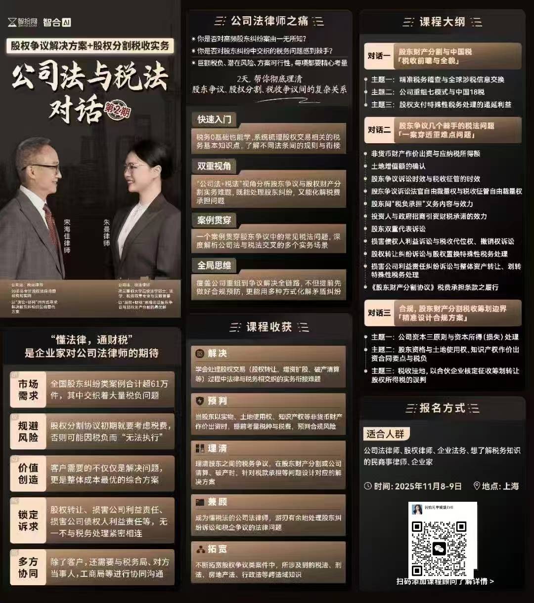 【会员专享】1108-上海-公司法税法二期报名链接-智拾网Eve 扫二维码继续学习 二维码时效为半小时