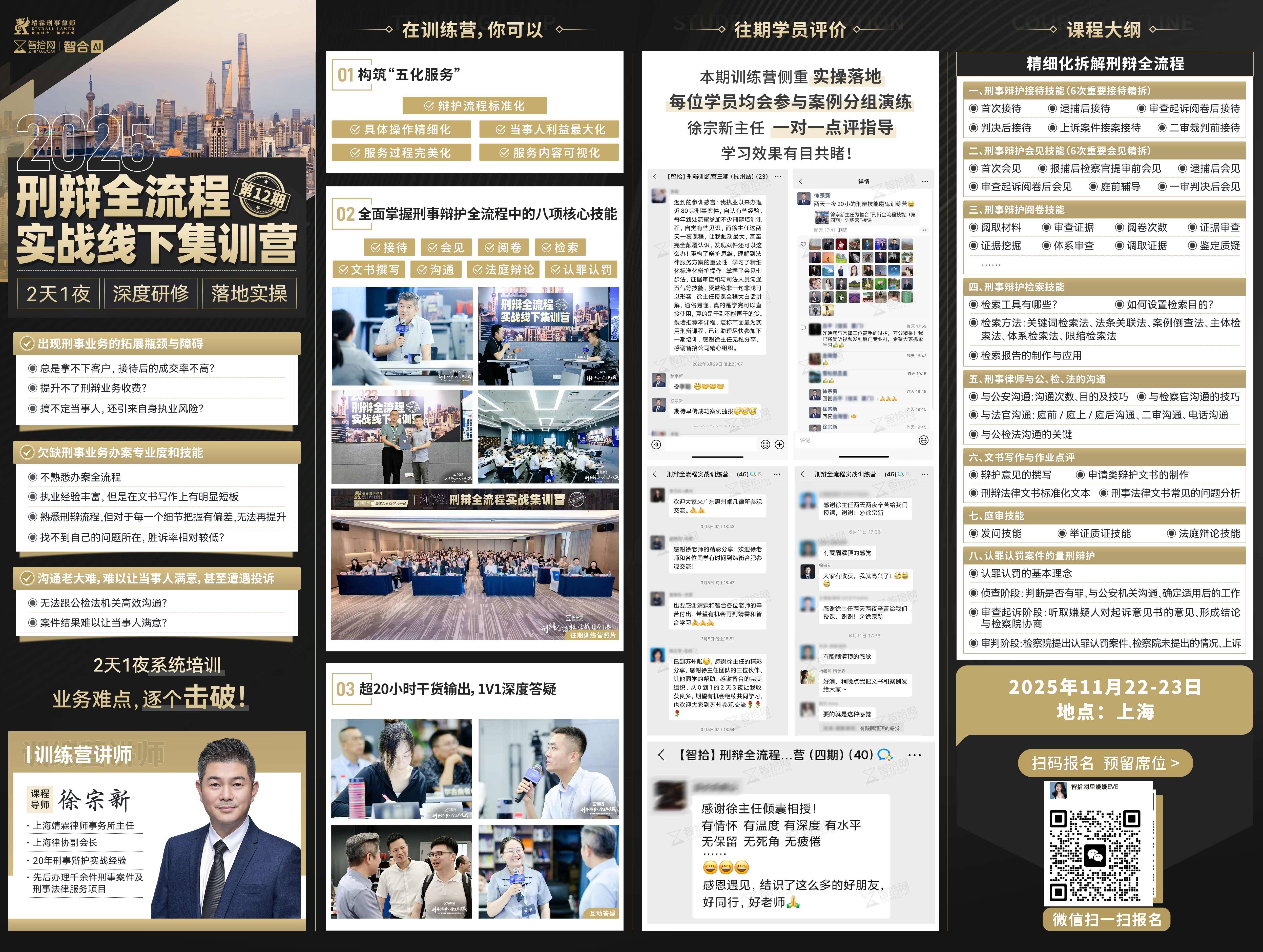 【团购】1122-上海-刑辩全流程12期报名链接-智拾网Eve 扫二维码继续学习 二维码时效为半小时